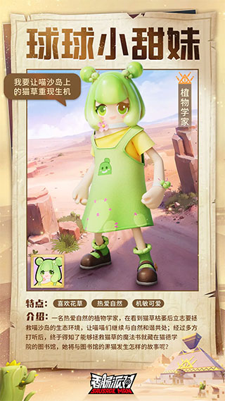 身为一名植物学家,球球小甜妹专心呵护着喵沙岛上的猫草。但天有不测风云,一夜之间喵沙岛上的猫草竟开始枯萎了,为了保护喵沙岛的生态环境,她立志要寻找到能够拯救猫草的魔法书,在旅途中她结识了仙掌人,历经冒险后她成为了仙掌人的小迷妹。