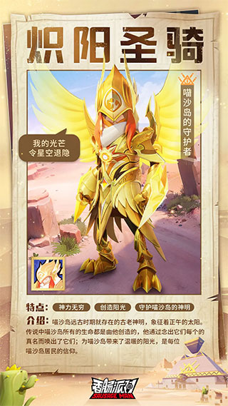 感受到太阳神像的召唤,太阳神来到了他所守护的喵沙岛,尽管常常与神使拌嘴,但太阳神也获得了一位无话不谈的好朋友。