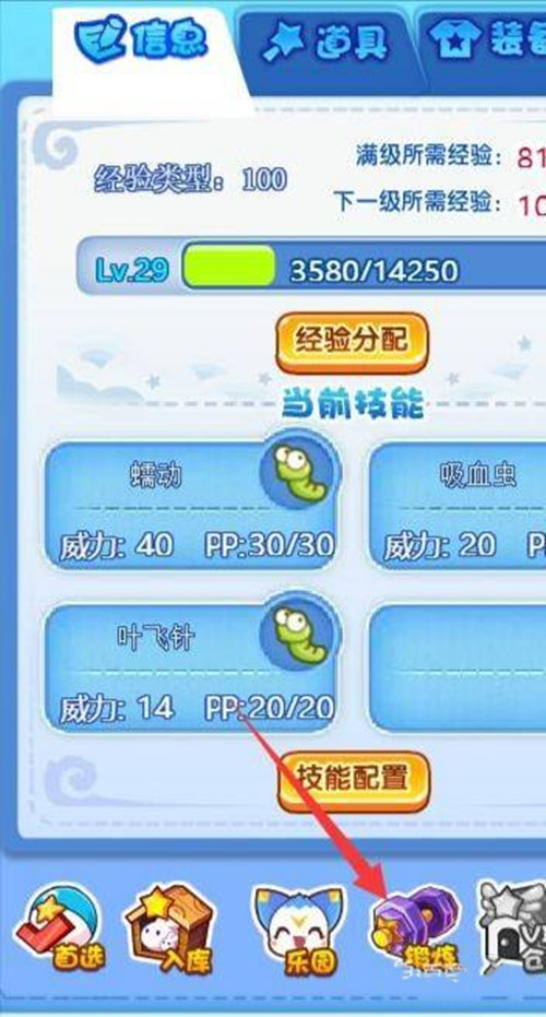 1、玩家打开伯言宠物列表,在其信息页面,可以看到他的进化条件。