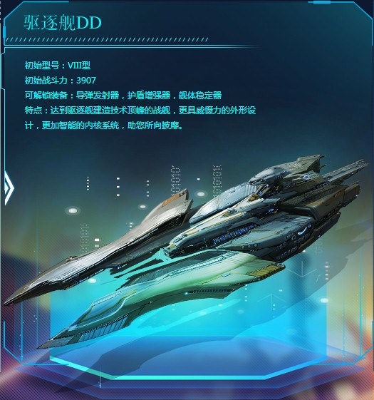 装备着导弹发射器的驱逐舰拥有所有战舰中较为均衡的数值;火力强度,士兵载量,护盾抗性,防空性能都有着不错的表现,而且攻击频率很快。作为舰队中的多面手,它进可攻,退可守。在对手战舰类型较多的情况下,它即可担任坦克的角色,又能打出输出。