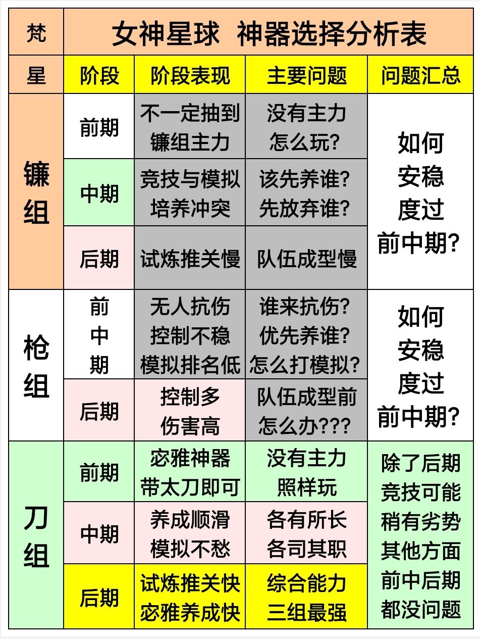 战镰,满级外观特效更霸气,但自身坦度低。步枪,前中期作用又低于战镰。太刀宓雅和太刀组超S,在前中后期的《综合能力》强于其他两组,养成难度更低,资源获取更容易。分析如下: