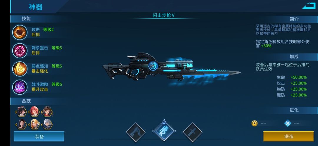 闪击步枪(步枪):后排单体,附加爆伤,暴击加攻。满级外观与属性预览: