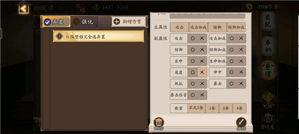 2、对pvp玩家:强速度时需要自行勾选,或者另建速度强化方案,在强化时只需要注意被锁定御魂不误弃置即可。