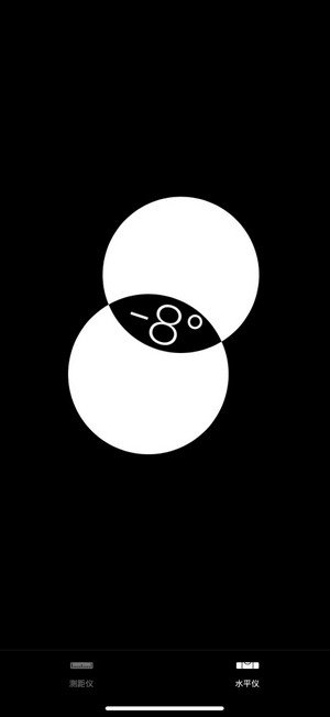 另外,苹果手机升级到iOS12以上版本后,系统会自带测距仪。打开测距仪,在界面右下方有水平仪。这个水平仪会显示倾斜度数,当两个圆重合时就是全向水平状态。