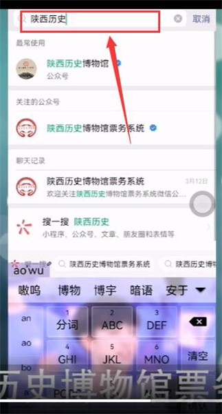 2.点击搜索框搜索【陕西历史博物馆票务系统】。
