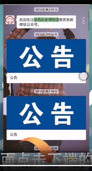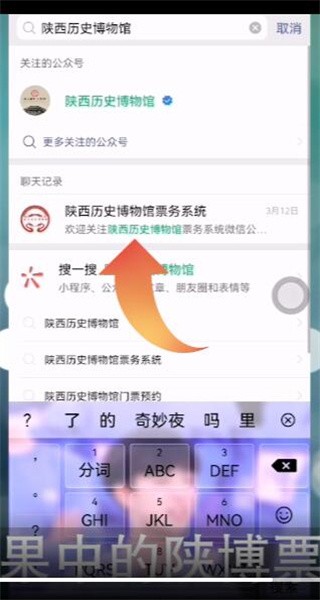 3.点击搜素结果中的陕博票务系统公众号进入公众号界面。