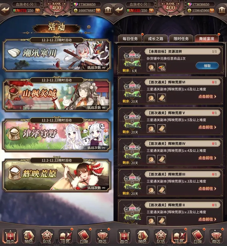 2、任务产出:完成活动期间的限定任务可以获得一定数量的【宵宴铜币】,任务包括每周刷新的【本周目标】和【每周挑战】任务以及活动期间常驻的【首次通关】任务,一定要记得在任务刷新前完成任务哦。