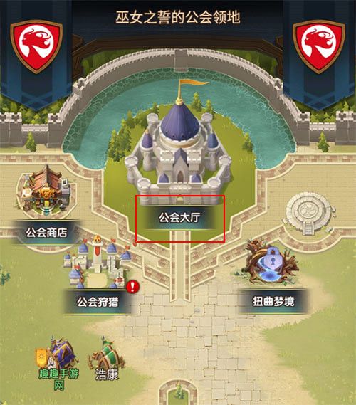 2、进入公会页面,选择公会大厅进入。