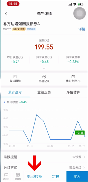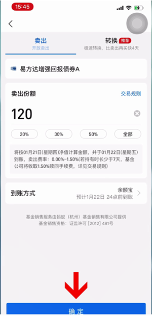 点击卖出/转换,输入份额再点击确定,