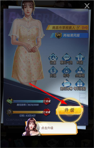 2、进入身份页面,可看到玩家身份基本信息,点击升级;