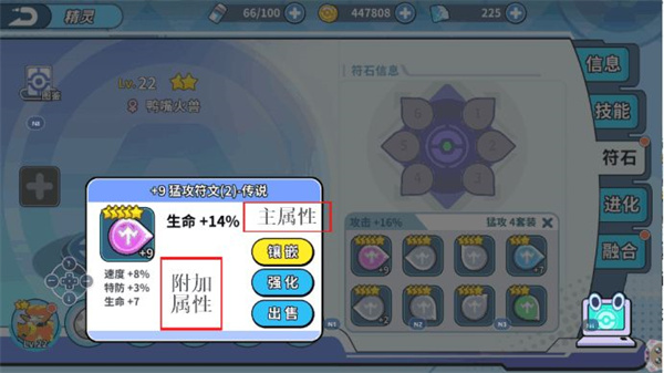 根据能力值的分布,可以判断出精灵所需要的符石配置