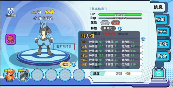 注意:双刀系精灵,由于攻击和特攻的能力值值相差不多,所以在性格上有一定要求(攻击:固执,爽朗;特攻:内敛,胆小;如果要走双刀,那么性格就必须是:急躁,天真)