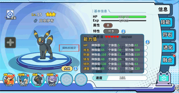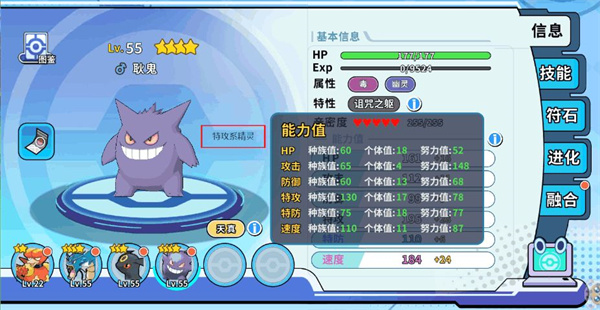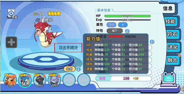 根据精灵能力值的不同,搭配的种类也不同