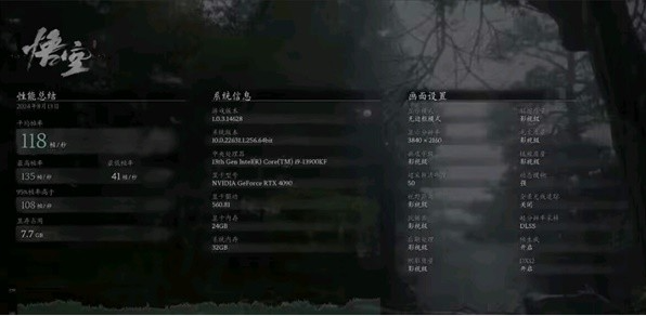 13900KF+RTX 4090(影视级画质2160、无全景光追、DLSS帧生成):最低帧41FPS 平均帧118FPS