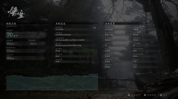 13600KF+RTX 4080S(影视级画质2160、超高全景光追、DLSS帧生成):最低帧60FPS 平均帧70FPS