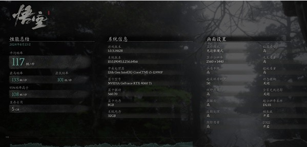 12490F+RTX 4060 Ti(高画质1440、无全景光追、 DLSS帧生成):最低帧101FPS 平均帧117FPS