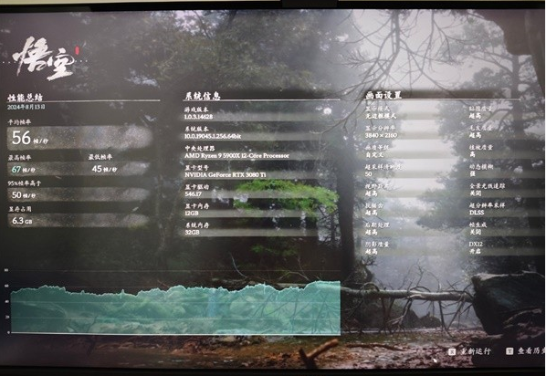 5900X+RTX 3080ti(超高质量贴图2160、无全景光追、DLSS帧生成):最低帧45FPS 平均帧56FPS