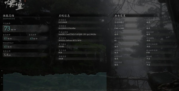 10700F+RTX 3070(超高画质1440、无全景光追、FSR帧生成):最低帧63FPS 平均帧86FPS