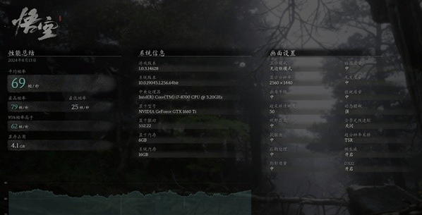 i7-8700+GTX 1660 Ti(中画质 1440 无全景光追 TSR帧生成):最低帧25FPS 平均帧69FPS
