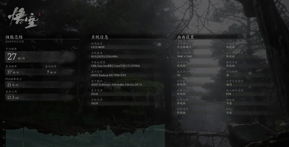13700K+7900XTX(影视级画质 2160 低全景光追 FSR帧生成):最低帧32FPS 平均帧36FPS