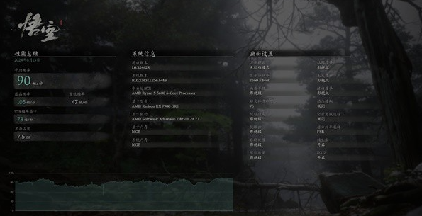 5600+7900GRE(影视级画质 1440 无全景光追 FSR帧生成):最低帧47FPS 平均帧90FPS