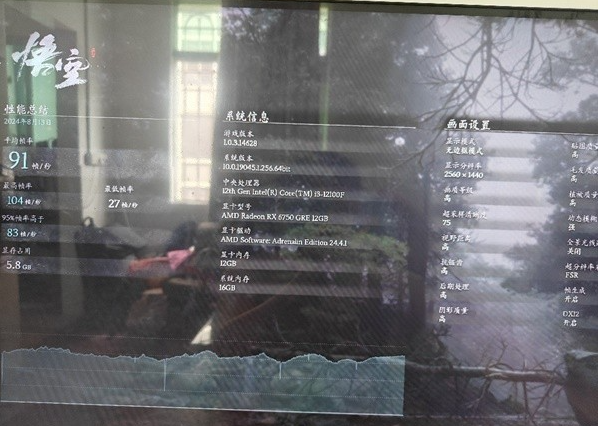 12100F+6750GRE(高画质 1440 无全景光追 FSR帧生成):最低帧27FPS 平均帧91FPS