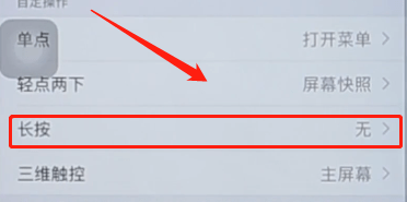 5.接着在“长按”选项那选择屏幕快照,
