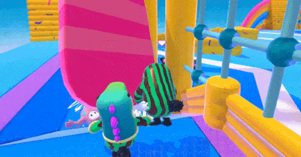 2、通过这一段不要被柱子绊倒就行,可以跳到柱子中心上面跳过去。