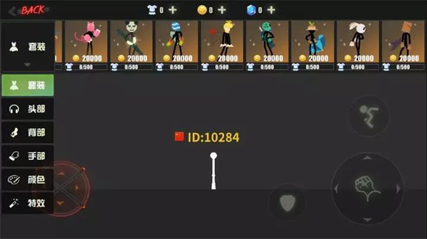 5、商城内包含多达几十套的火柴人套装,还有火柴人身体各部位的装饰及特效,可以随心所欲DIY搭配。