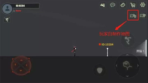 7、玩家自制地图按钮,《逗斗火柴人》支持火柴君们自己制作地图,每个火柴君制作地图都能在此显示哦!