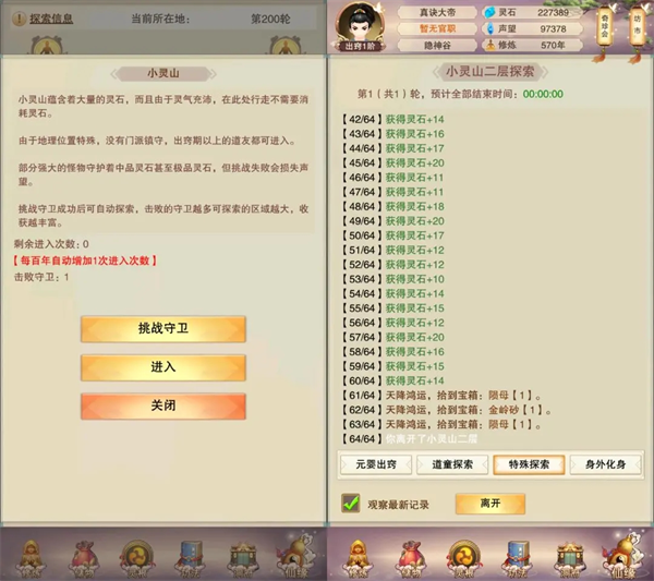 还有一个解锁的功能就是小灵山,不过基本没什么用,特别鸡肋