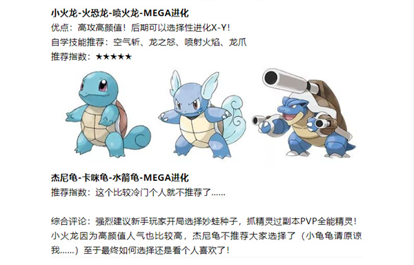 当然选小火龙的人也很多!推图PK都不错!至于乌龟就不建议大家选择了比较冷门……