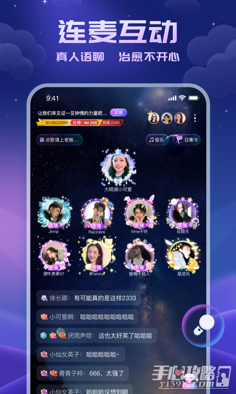 3、多人去连麦,房间里有丰富多样的玩法,小游戏有助于打破僵局,通过语音与TA见面。
