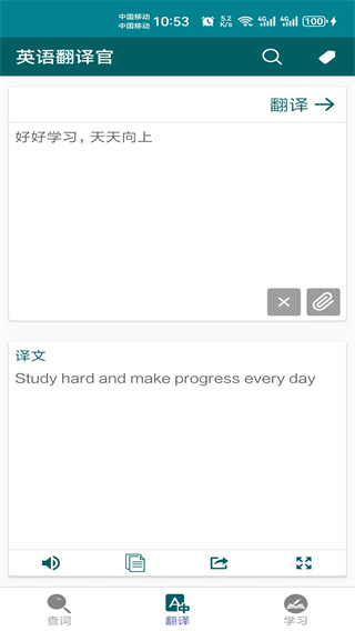 2、可以将翻译结果保存至手机本地,随时随地的练习短语;