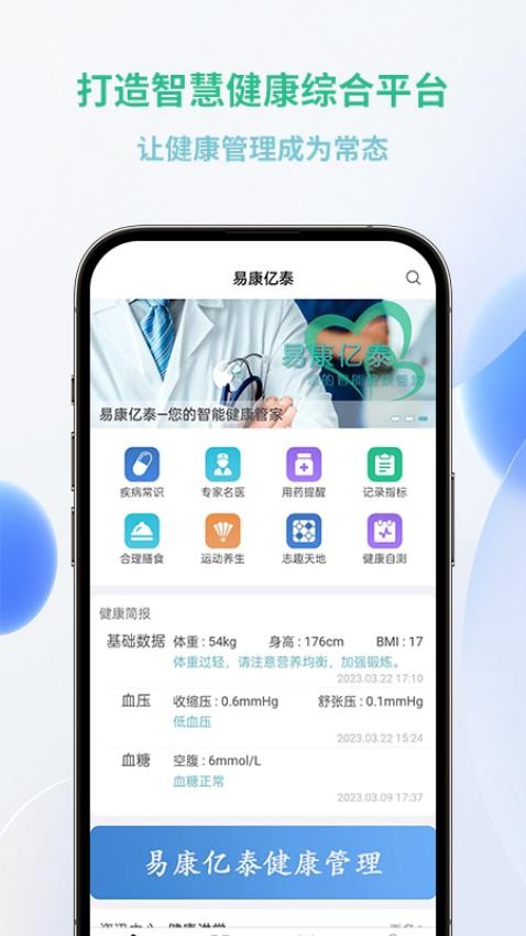 易康亿泰是一款用户信赖的健康运动软件,易康亿泰提供了有任何健康方面的问题都可以线上咨询,还有非常专业的医师咨询服务,满足用户的预约体检需求,十分不错,让小伙伴们可以获得更加健康的生活方式,可以为您提供更为全面详细的健康建议。软件简单易用,感兴趣的朋友快来百玩游戏网下载软件吧!