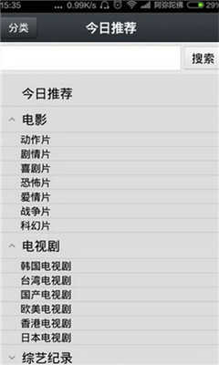 2、查看app提供的影视分类信息,了解影视的详细分类。