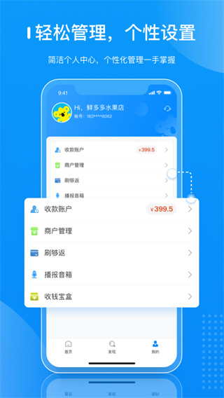 1、多种收款方式,收款推送通知,商家所有的收款设备,收款成功后实时消息推送、语音播报通知收款金额。
