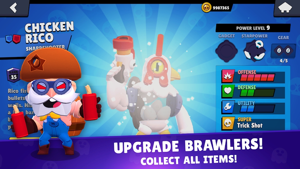 3、男枪牛:基本攻击为5发子弹,能更快破箱。大招可以用来追杀敌人。它具有很高的健康和强大的生存能力。