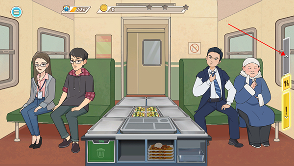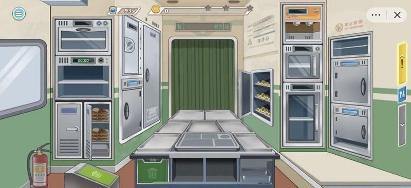 1、下载进入时代绿皮车手游,上车就开始吃饭,先将咖喱饭放进微波炉中进行加热;