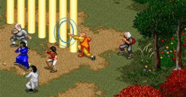 3、经过了一场惊心动魄的苦战,终将这十个大坏蛋解除了;拖着疲惫的步伐走进圣堂内部遇见游戏四大天王南贤、北丑、林厨子、孔八拉,在一番离别话语后,孔八拉也将神杖还给小小带回留念......