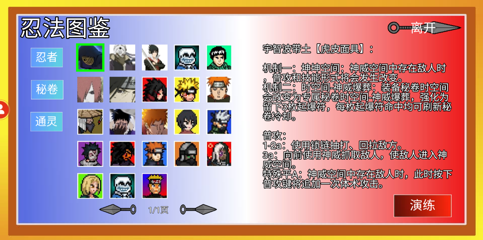 4、可以看得出来,这款游戏的玩法还是非常丰富的,在图鉴中,我们可以进一步了解每一个角色的技能介绍和机制,如果想练习,可以点击进【演练】。