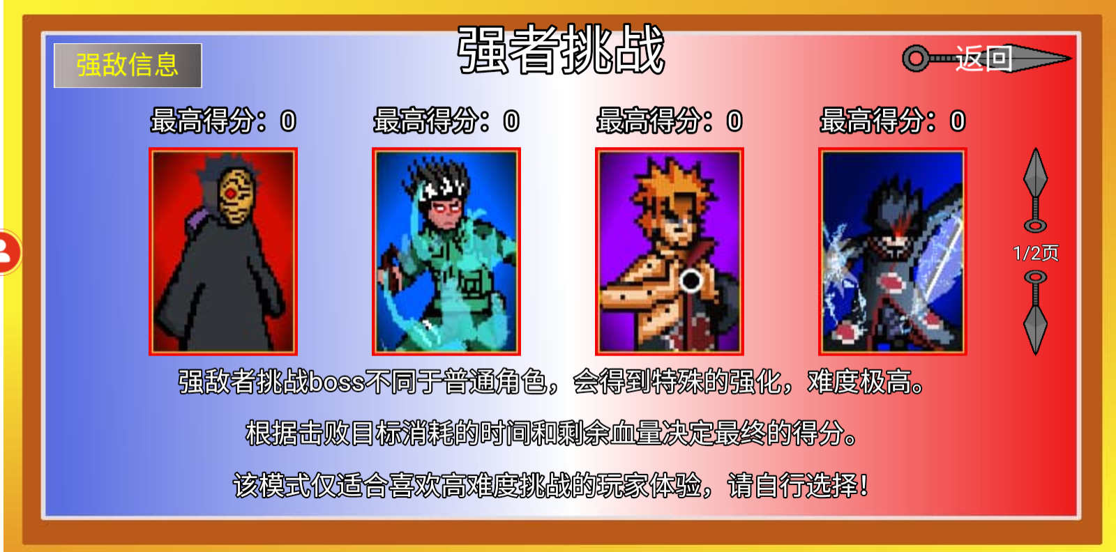 像素火影美化版2.0是一款最近非常火爆的动作冒险手游,玩家们可以在像素火影美化版2.0中体验到新版本上线的模式玩法。复古街机式的像素风格,并通过不断的学习各种技能和招式,本作以经典火影忍者故事为背景,营造出逼真的火影世界,游戏是由大神自制,像素火影美化版2.0致力于为玩家呈现原汁原味的火影忍者世界,玩家们可以邀请好友一起加入到像素火影美化版2.0当中。