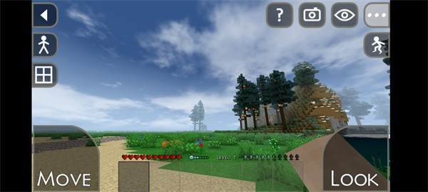 7、右上角的功能按钮分别可以控制角色的视角、控制场景的天气等,我们要做的就是在这个地图中存活下去。