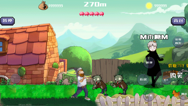 3、不要让僵尸靠近戴夫,戴夫初始生命有5点。