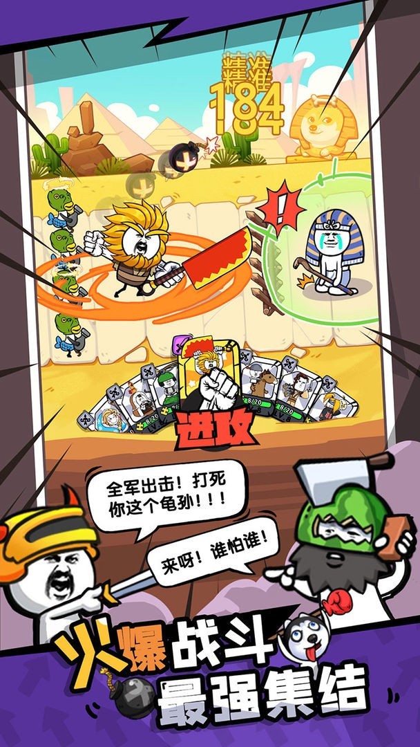 合成表情包战争正版是一款趣味合成类的小游戏,从角色设定到操作玩法,合成表情包战争正版体验都是非常新颖的,超多的不同的任务中,你可以对士兵进行升级,选择不同的角色战斗,玩家可以自行体验,它采用了我们平时生活中最喜欢的暴走漫画的表情包,开始更加独特的玩法的享受,让玩家们下载到手机上玩到最好玩的手机游戏。