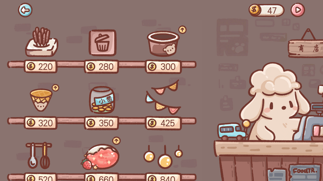 4、可以在商店购物,进货,用销售冰淇淋赚到的钱,从我们友好的绵羊店老板那里购买新的、更好的冰淇淋设备。