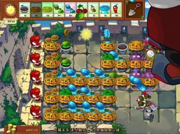 2、两个冰菇和两个辣椒的方式属于比较主动的攻打,BOSS会较快被解决,两个盆或两个南瓜可以在你的植物被摧毁后迅速重造,看个人所需了。