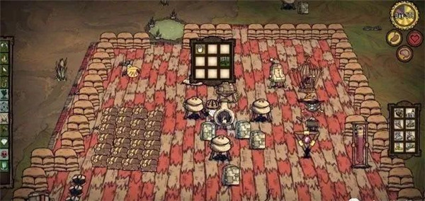 建家期:在地图探出合适点位后尽快放下二本和锅以便早日可以煮食物吃。家如果建在红鱼人房附近,就不愁没食物吃了,捡来的鱼可以晒肉干。有蜘蛛、蛇尽量杀掉,多捡怪物肉。1怪物肉+3个蘑菇或浆果或海草可以出肉丸,来度过前期饥肠辘辘的时候。