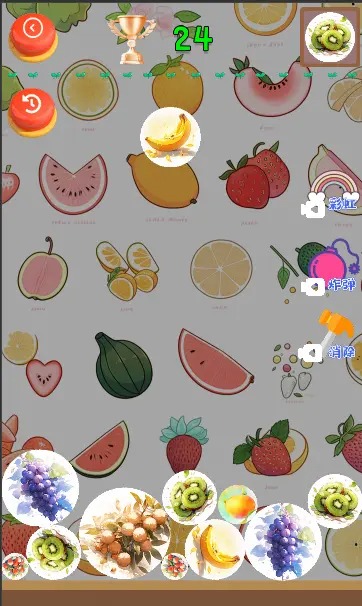 1、五颜六色的水果,进行消除到底,每次都有不同的玩法等你,自由体验趣味合成玩法;