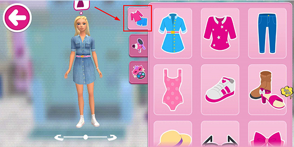 2、点击右边的衣服图标,就可以给我们的芭比更换衣物。